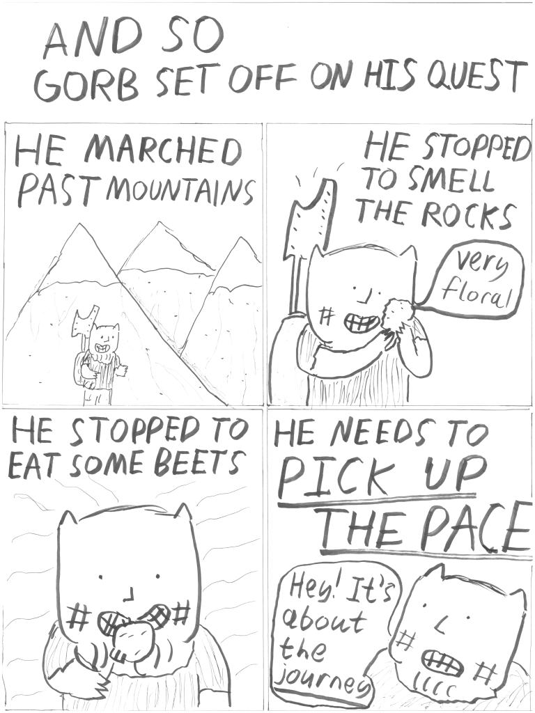 I’m I am excited to share with you that I’m working on a serialized graphic novel about Gorboline, with the working title of Gorboline’s Quest!