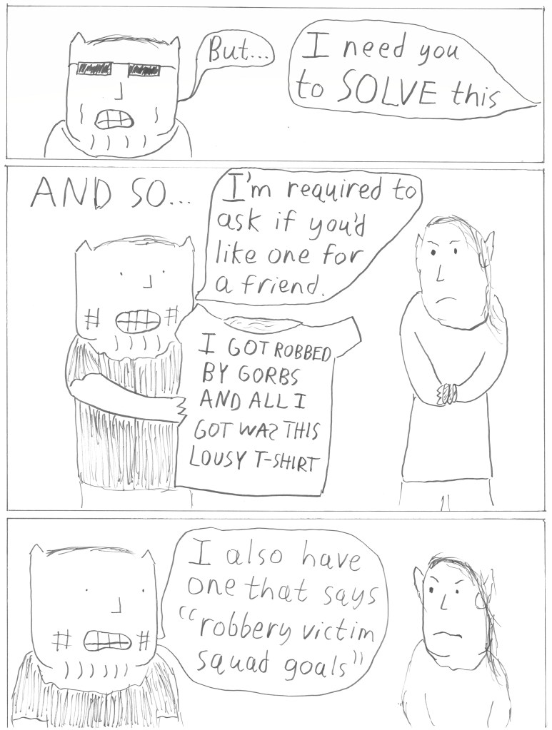 Just establishing that Gorb likes pigeons. Not that it’s important to any big overarching plans I have down the line